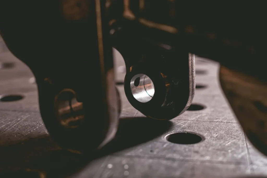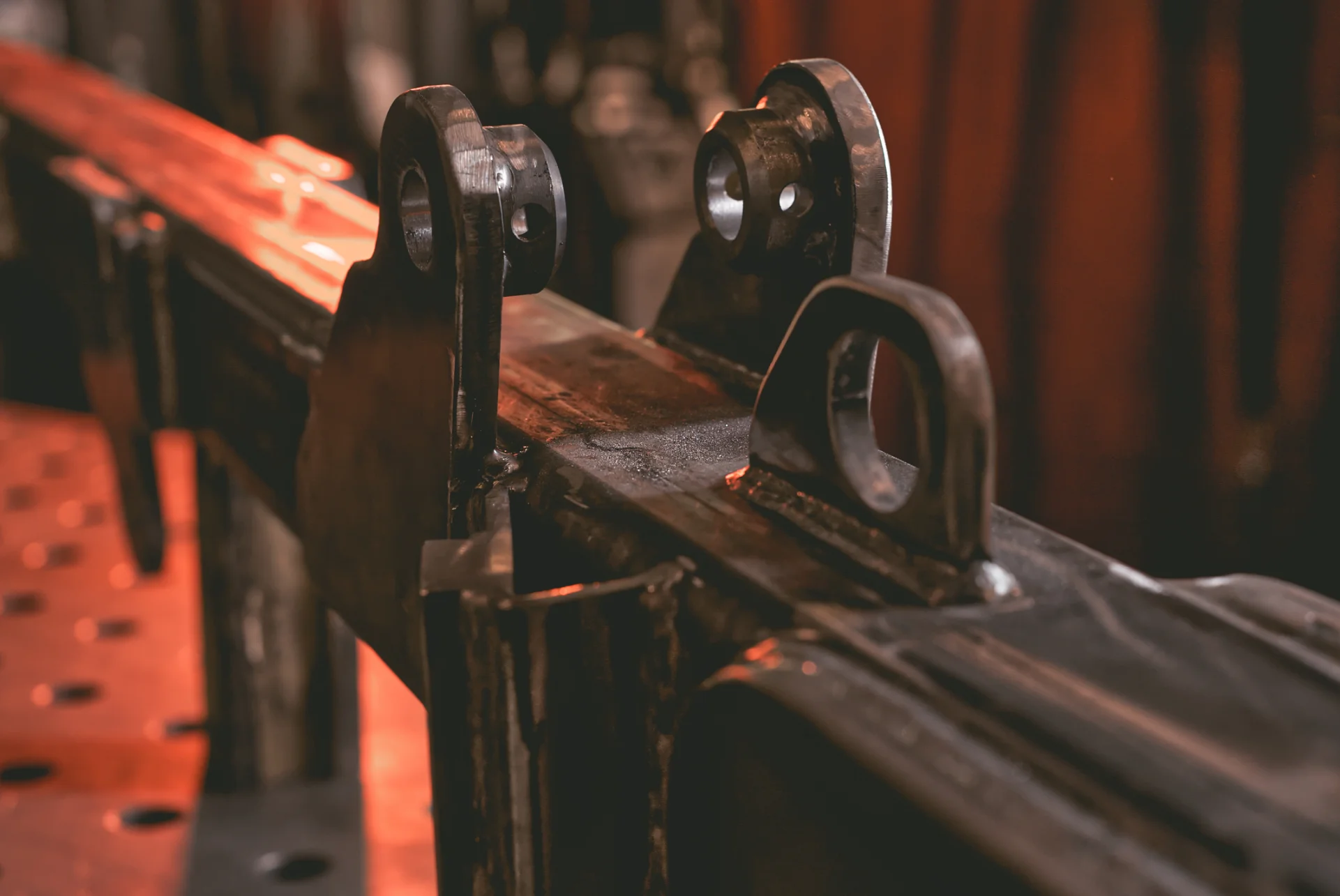 Questo braccio basculante per macchina tagliarami, macchina appartenente al settore agricolo, viene prodotto interamente nella nostra azienda con diverse lavorazioni di carpenteria metallica quali il taglio laser di lamiera, il taglio laser tubo, la tornitura, la puntatura in maschera, la saldatura, e subisce un controllo finale delle tolleranaze di passaggio dei perni nei fori.