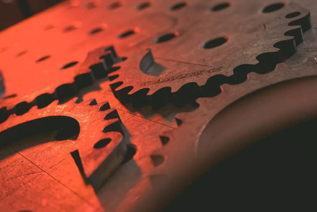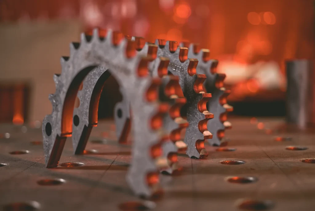 Questa Corona dentata viene prodotta interamente nella nostra azienda con diverse lavorazioni di carpenteria metallica quali il taglio laser di lamiera, e la foratura.